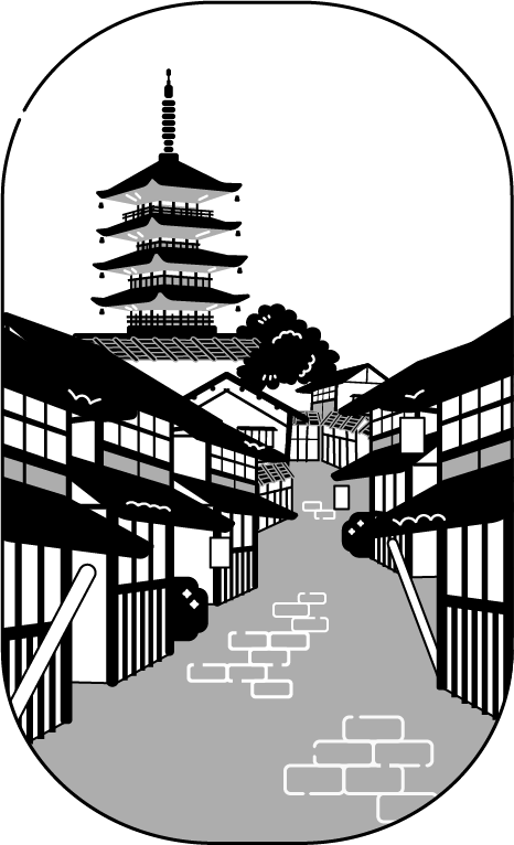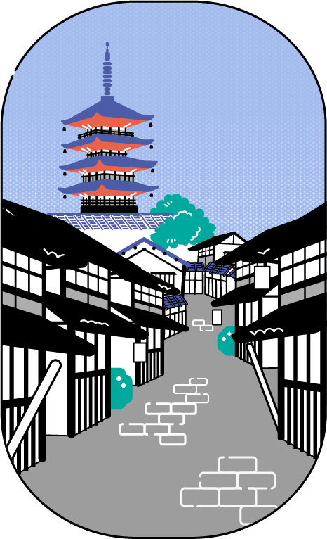 京都・八坂の塔歴史的な街並みを描いたイラストです。修学旅行や国内旅行、観光地紹介、和風のデザインなどに幅広くご利用いただけます。京都の情緒あふれる雰囲気を表現しており、旅行会社や観光パンフレット、イベント告知、教育教材などにもおすすめです。