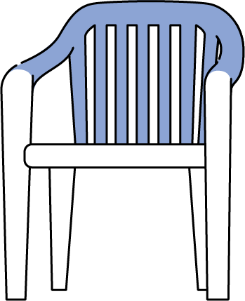 屋外でよく使われるプラスチック製チェアのイラストです。サウナやプール、海などの夏のコンテンツの賑やかしにおすすめです。