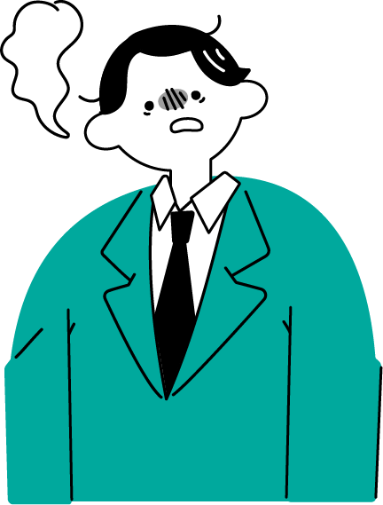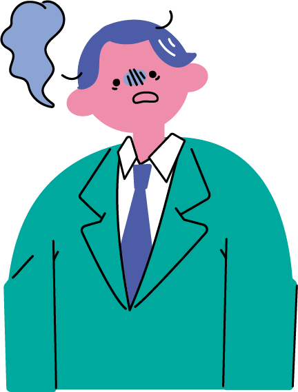 疲れげんなりした表情を見せるスーツ姿の男性のイラスト。仕事でのミスや想定外の出来事に疲れ戸惑うシーンを、シンプルでコミカルなタッチで描いています。現場の声などのサービスページなどでもおすすめです。