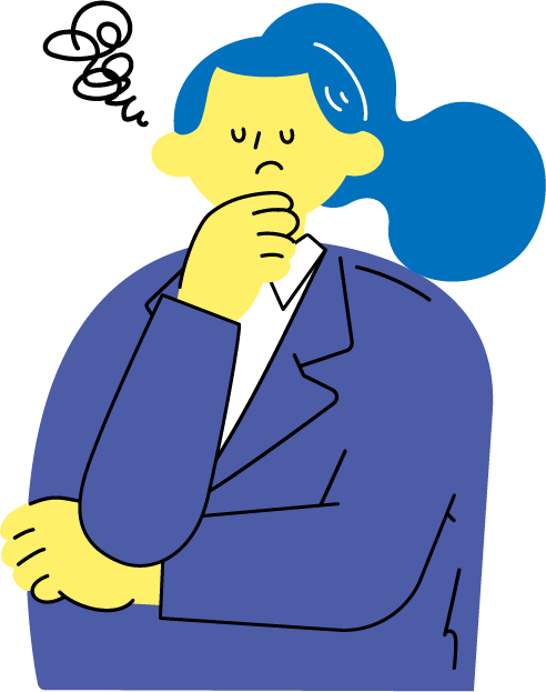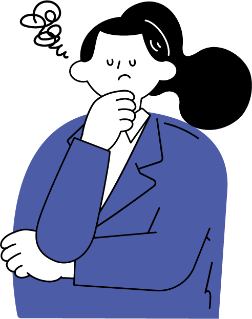目を閉じ顎に手を添え思考するの女性のイラスト(カラフル配色)