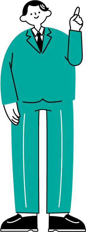 スーツ姿の男性が指をさして説明しているイラストです。プレゼン資料やサービス紹介ページ、社内研修、営業提案など「人に伝える場面」でおすすめの素材です。(2025年9月更新:指や顔の表情をより自然に修正しました)