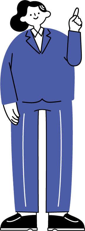 スーツ姿の女性が指をさして説明しているイラストです。プレゼン資料やサービス紹介ページ、社内研修、営業提案など人に伝える場面など汎用性の高いイラストなので、BtoB・BtoC問わずおすすめです(2025年9月更新:指や顔の表情をより自然に修正しました)